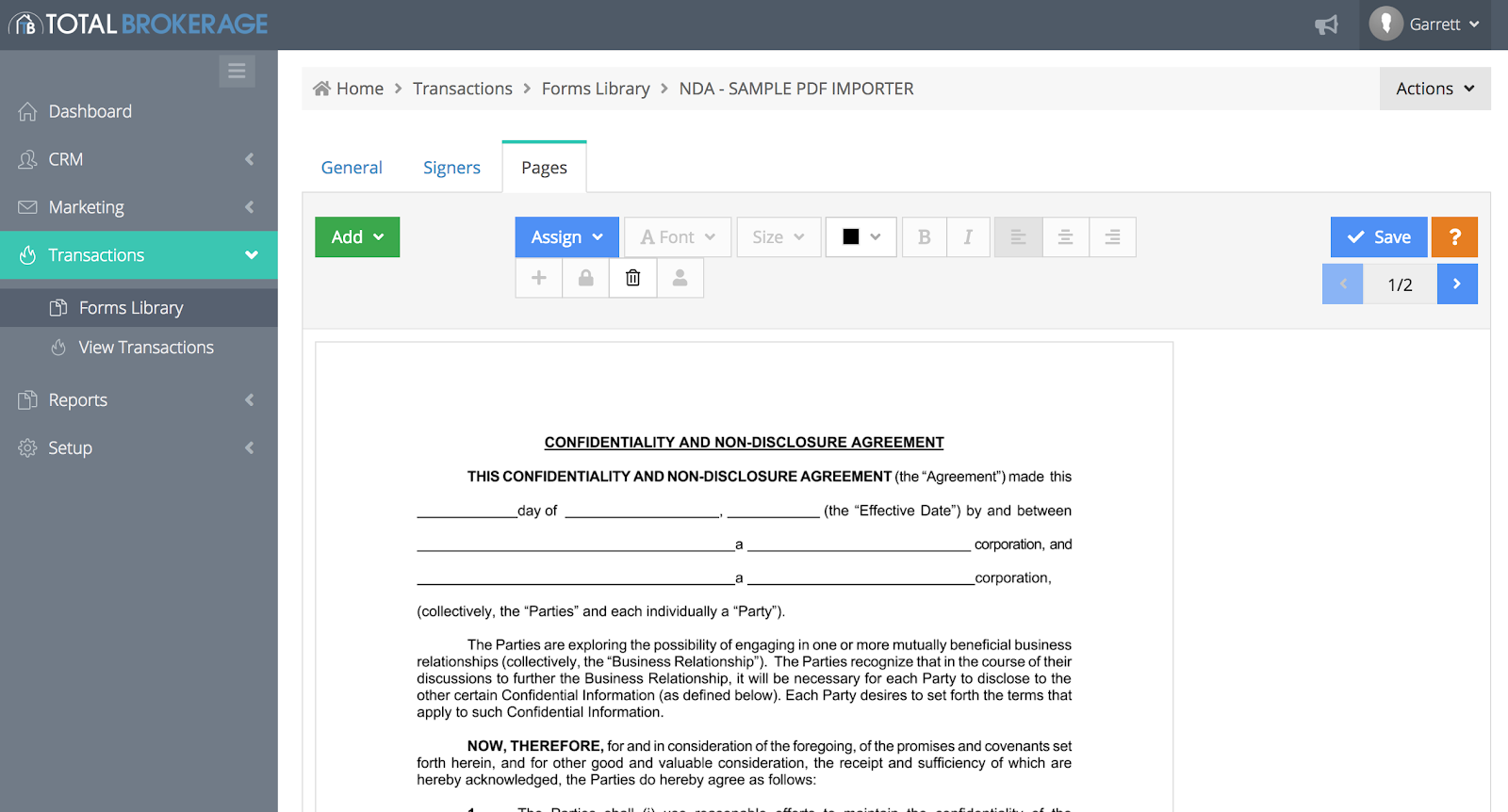 Assign: (Contact, Vendor, Property, Financial, Dates, and Agent) information to text boxes, and edit text. If you prefer to not work with the full size Toolbar, you can click on the Actions button, and select Use Condensed Toolbar.