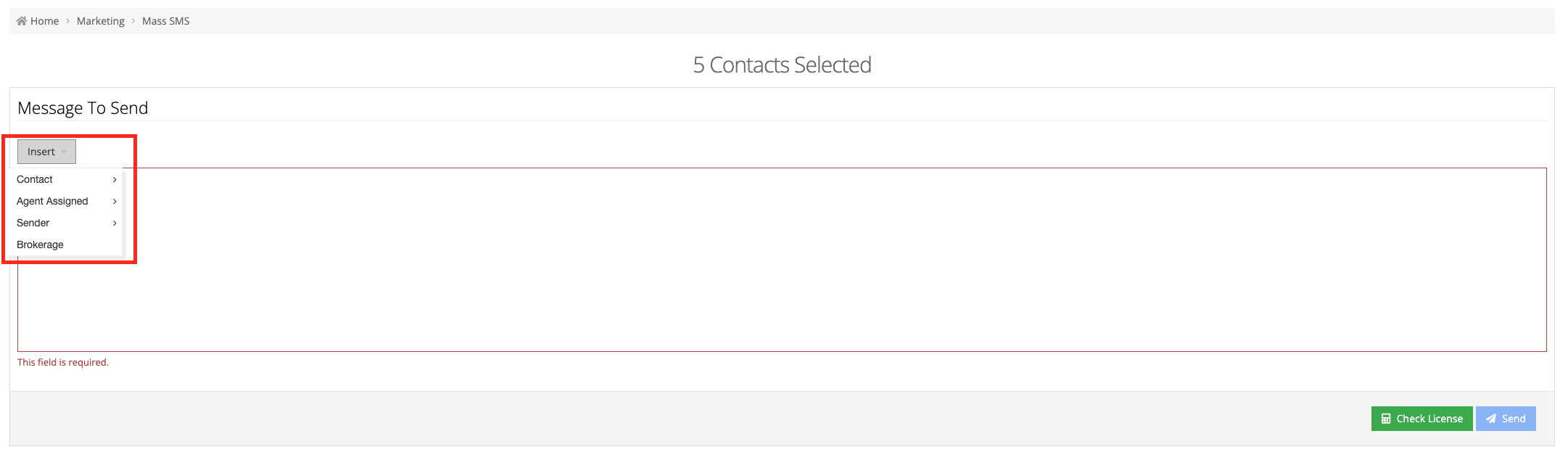 When you have finished composing your message, click the green Check License button to ensure you have enough licenses to send this SMS to the group of contacts.