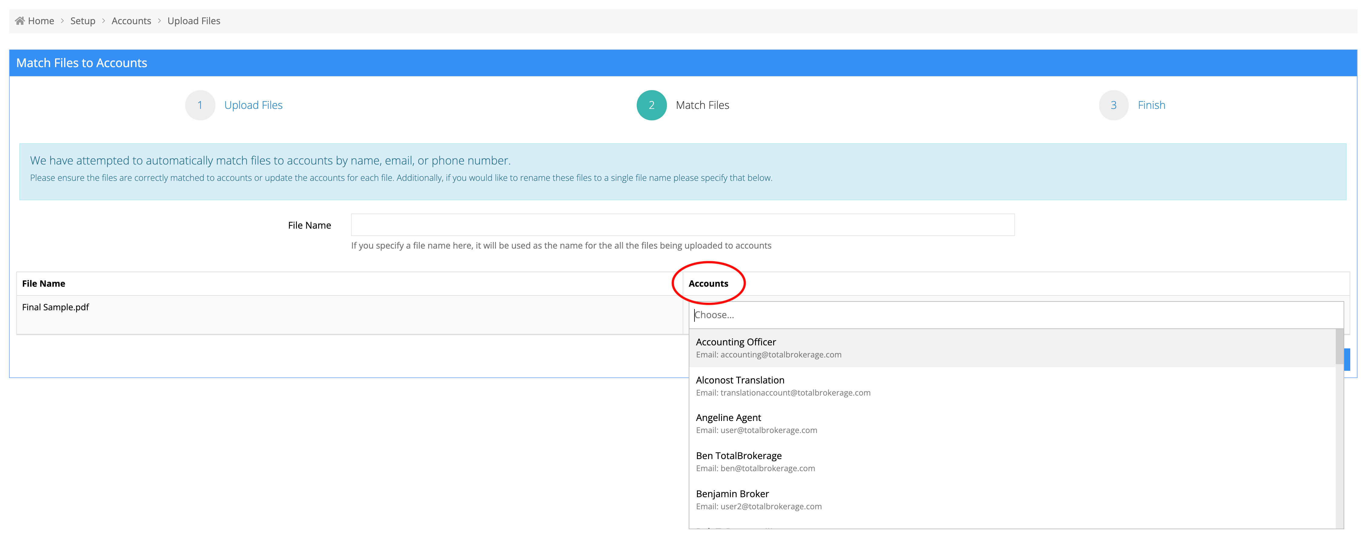 Once confirmed, the Files will be uploaded to the designated Accounts.