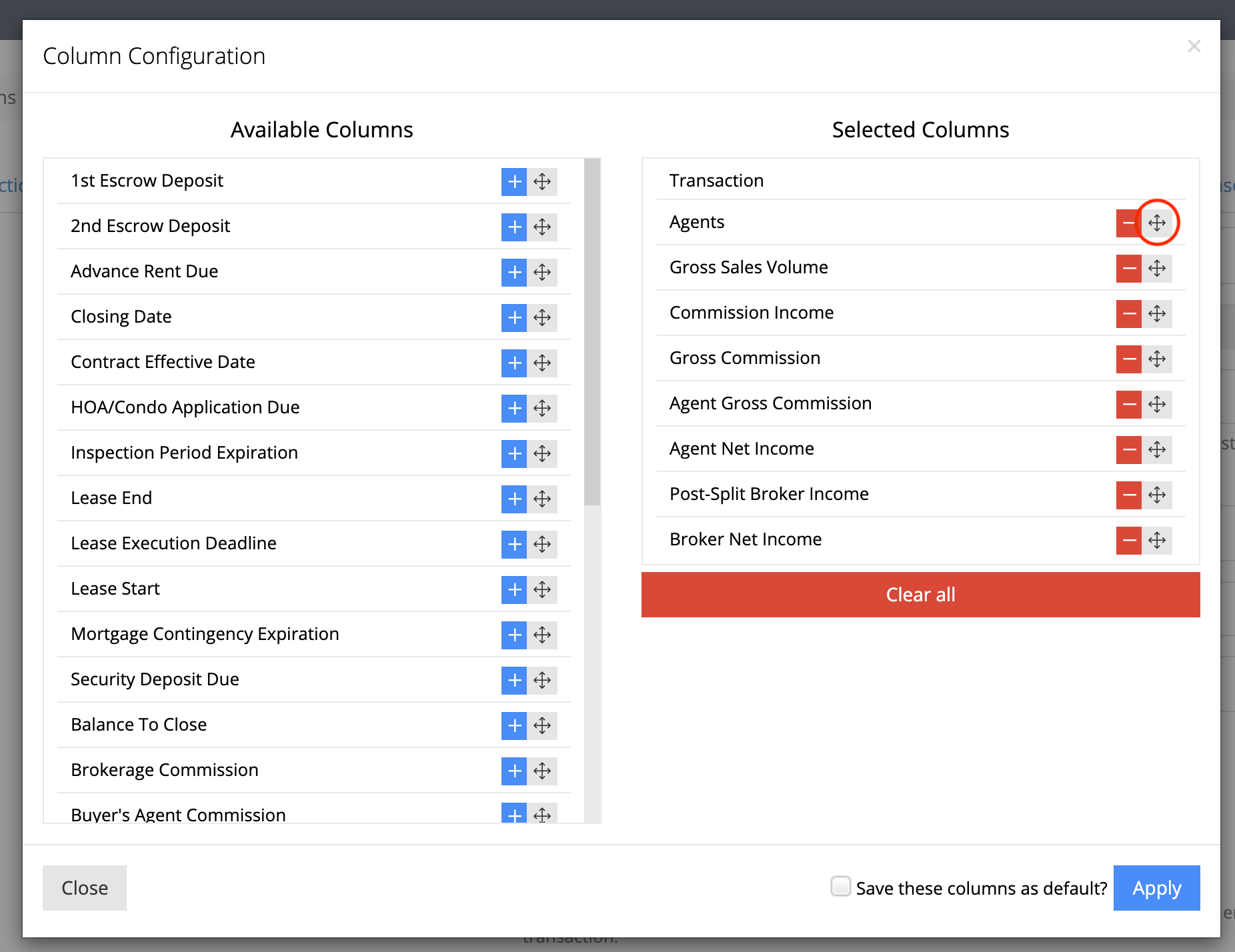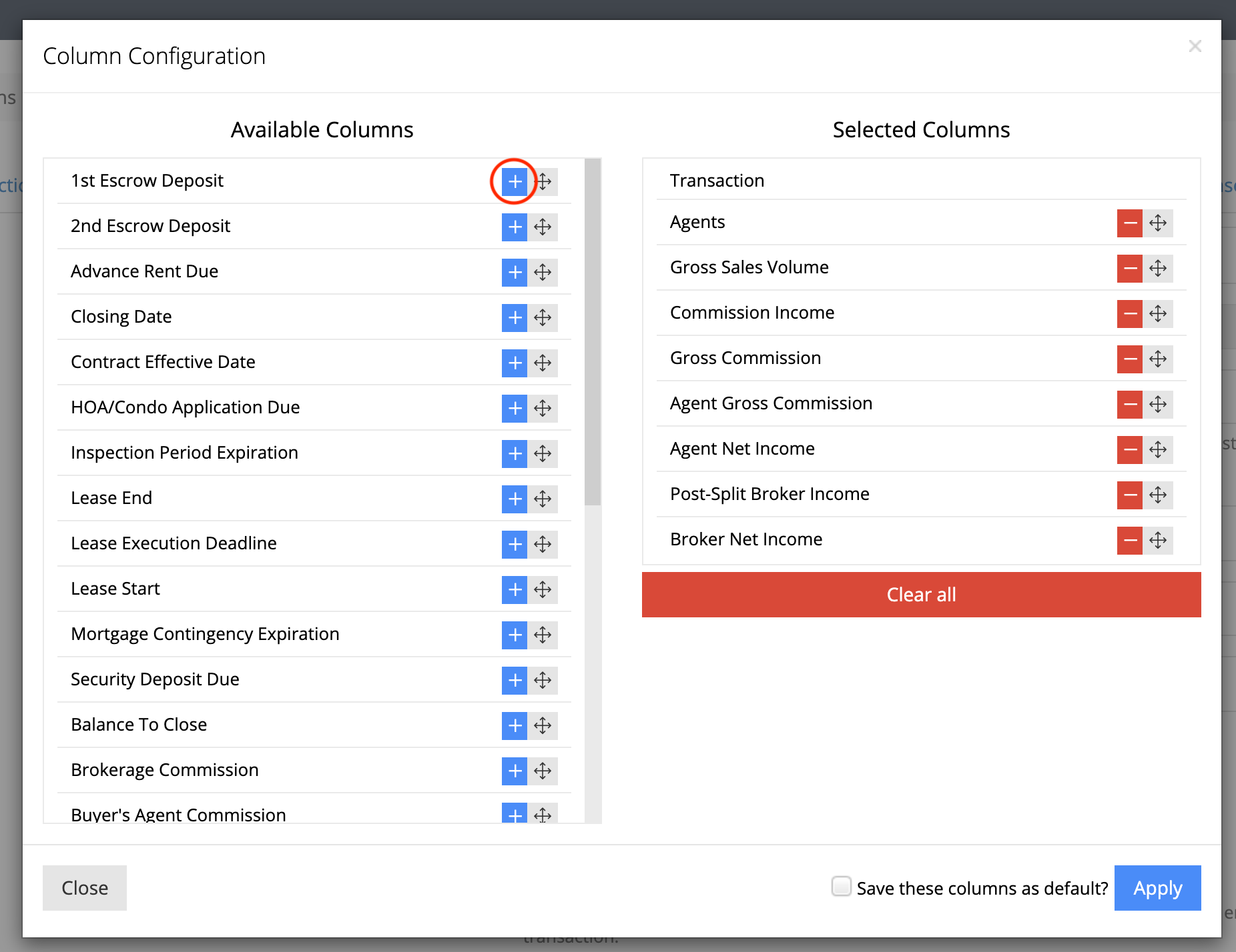 - If you want to save the column configuration for the future, you can check the box for "Save these columns as default" and press Apply.