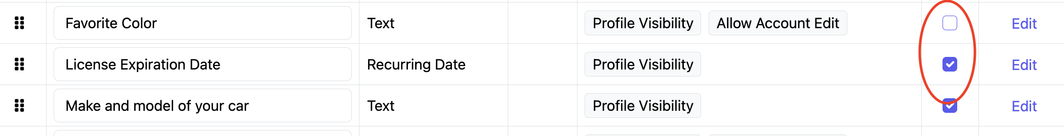 - You may also choose to have this information shown in Account Profiles and Allow accounts to modify this information from their profile.